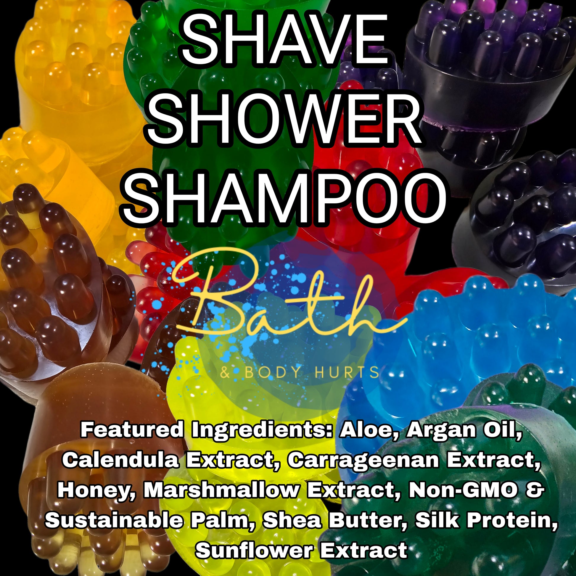 Shave, Shower, Shampoo solid Glycerine Bar.